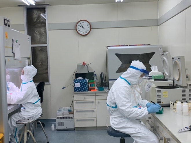 – Lấy mẫy dịch đường hô hấp của người cần test (dịch tỵ hầu, dịch tiết đường hô hấp sau đó bơm vào dung dịch, chờ kết quả 30 phút biết dương hay âm tính.